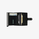 The Miniwallet is both a compact and secure wallet. In addition to the cards in the Cardprotector, the interior offers space for a few cards, paper money, receipts, business cards and some coins. The Miniwallet is compact and, because of the press stud closure, easy to carry.